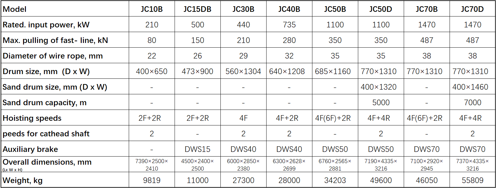 DC Drawwork Specifications