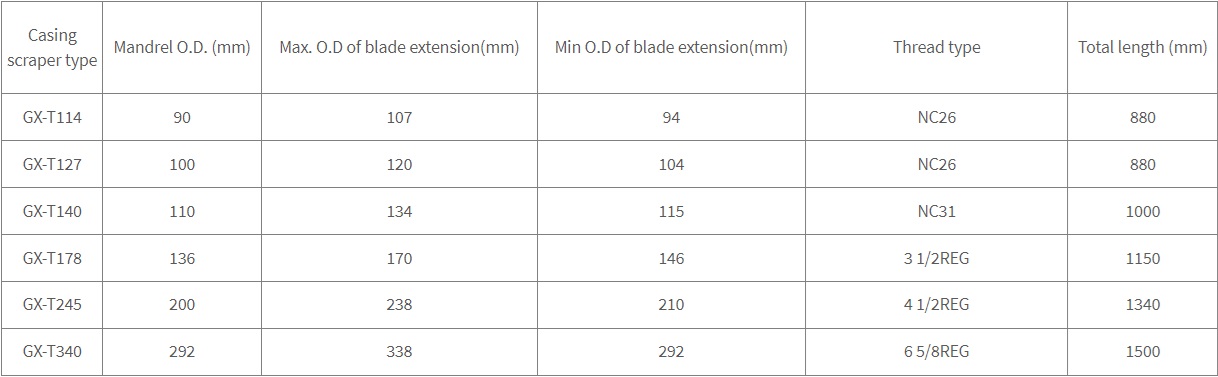 Casing Scraper is ideal for the removal of dirt which may be left over the inside walls of casing, such as solid cement, hard wax, various salt crystals or deposits, perforation burrs and iron oxide residues resulted from rusting etc.. At present in the large oil well casing scraper is nessary tool for scrapping in the internal wall of casing.
